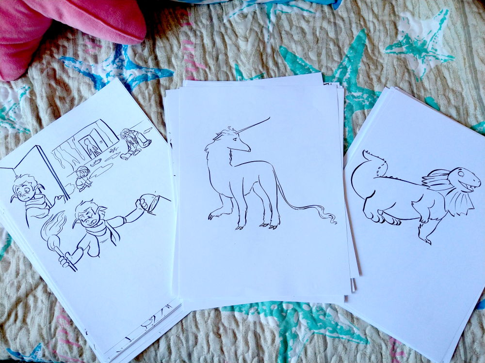 A page of sketched or inked art. Most of these are 8.5x11 sheets of printer paper. Some are loose sketchbook pages. Note that I often make digital corrections to artwork after it is scanned, so what you receive may differ from what was posted online. (Also, some of these are base lineart or sketch bases for images that were posted with digital color added.)